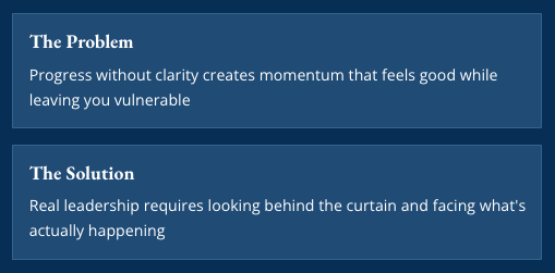 Progress without clarity creates momentum that feels good while leaving you vulnerable. Real leadership requires something stronger. It requires looking behind the curtain of your own business and facing what is actually happening.